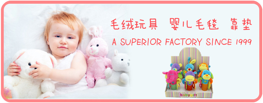 創(chuàng)建于1999年,公司主要經(jīng)營產(chǎn)品有:各種毛絨玩具,靠墊,童毯,嬰童家紡產(chǎn)品,布匹等,公司注冊資本300萬美元,現(xiàn)有員工200余人,占地達(dá)30畝,廠房15000平方米,可年生產(chǎn)玩具及靠墊2百萬只,家紡成品100萬套,布匹100萬米。